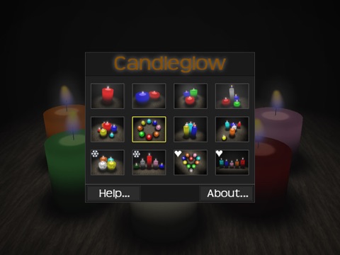 Perfect for use at a restaurant or even dinner at home. Candleglow has realistic flame flicker and surface textures. Just simply select from ten different sets of candles and the colors of each.