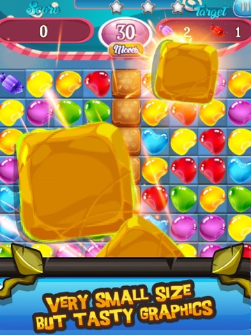 The basic candy move of this game is horizontally or vertically swapping the positions of two adjacent candies to create sets of three or more candies of the same color.