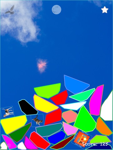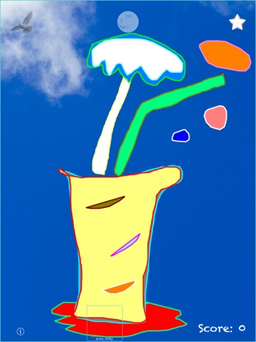 You can create free drawing coloured forms or you can add animals from the animals table which will float around the entire screen. Every time 3 forms having the same colour collide you get points.