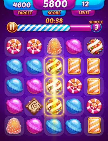 - Tap two or more sweet candy of the same type.