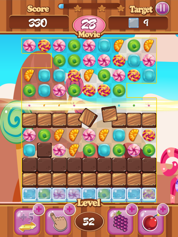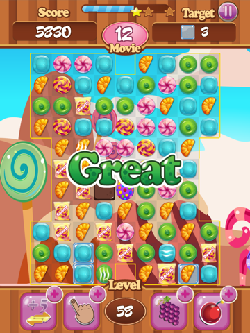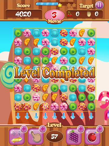there are 100 levels for you to experience. it may be hard to gain the target score in high level. If you have a intelligently change position of candies, you will get bonus score