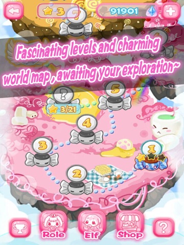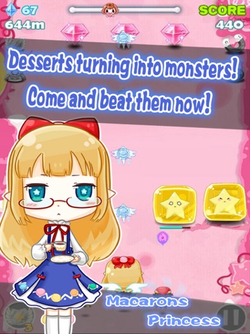 Up in a secret island in the City of Sky there are four cute princesses who love candy and dessert. However one day, an evil spirit broke into the peaceful city and enchanted one of the princesses. All of a sudden, the City of Sky was turned into battle field. Another three candy princesses with their pet elves and started to fight with the evil dessert.