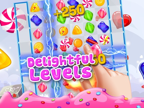 Game of candies. Yeah my favorite I love this game full of colorful candies. Its awesome at some levels. Dont wait go to AppStore and download this game for free. My 5 star to the game for awesome gameplay