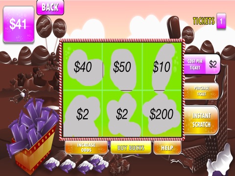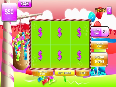 Scratch until you cant scratch no more. Candy Scratchers gives you instant scratch tickets with the feel like the real thing. Just rub your fingers over the 6 "$" to reveal your prize. Match 3 or more and you get that winning feeling.