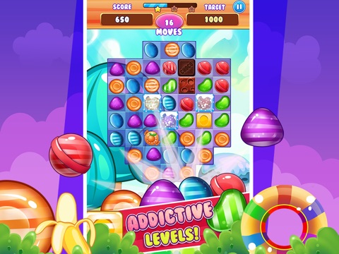 Enjoy with free match 3 puzzle game in sweet candy world!