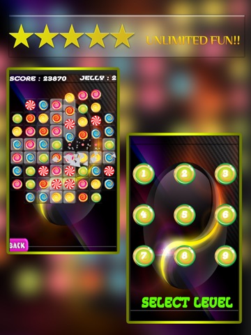for candy : play this delicious Candy Techno Match 3 Puzzle, with all levels open and great puzzles