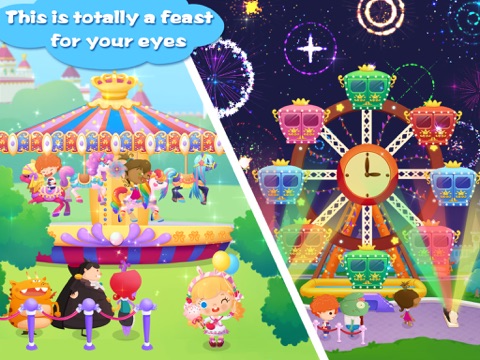 Open the game and release your passion for carnival. How about starting with the roller coaster? Just choose one from all those colorful and stylish roller coasters to kick off the thrilling trip. Thats the most exciting moment when the roller coaster is downhill, you can press and hold the screen to give it a whirl. During the game, beautiful fireworks will feast your eyes and high-speed camera will capture your expressions. Dont forget to check the funny screaming faces after the game. Next, lets try the romantic ferris wheel. Tap the screen at the right moment to help tourist get on board and be careful not to let them fall into water. Hey, look at the beautiful ferris wheel in the night, lets adorn it with beautiful lights and fireworks. When the colored ball or bar reaches the bottom and aligns with the circular mark, you can tap the screen to turn on the lights or set off fireworks. If you can make more combos, youll see an amazing ferris wheel night show. Come and join Candy, our little girl never disappoints you.
