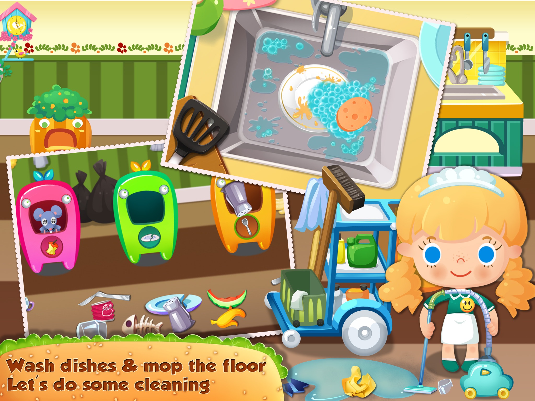 To a chef, theres no place like restaurant, so you must want to improve this place more than anyone else. Now, wish granted! Each time you make a dish, youll be awarded a loving heart, with which you can exchange for some top-notch decorations to beautify this place. You can click the loving heart icon on the top right to have a look. Wow~ that clean cart is so nice, lets work hard for it. Because you know, keeping this place in a clean and sanitary condition is also part of your job. Oh~ Our dear Candy is a little bit upset, hurry to check on her. Ah, she got no time to change her clothes the whole day, so why dont you give her a makeover?