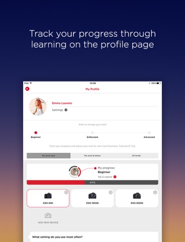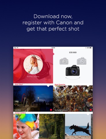 With tailored content and videos for every latest Canon EOS camera model*, the Canon Photo Companion app helps you learn about your camera and how to use it. Find the best lens and accessories for your camera body, discover new features and more, so you can truly unleash your creative potential.