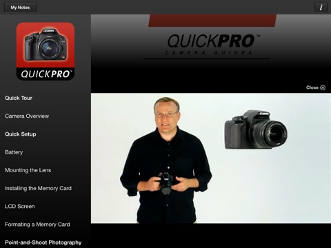 With iPhone Camera Guides from QuickPro, youll never have to miss the shot of your life again. Whether it’s that birthday surprise, graduation ceremony, or your daughters wedding day, the ability to take a photo like a Pro is within reach. Its literally in your pocket. Easy to use, full color video guides to all the top digital models are available for quick reference and review on your Apple iPhone.