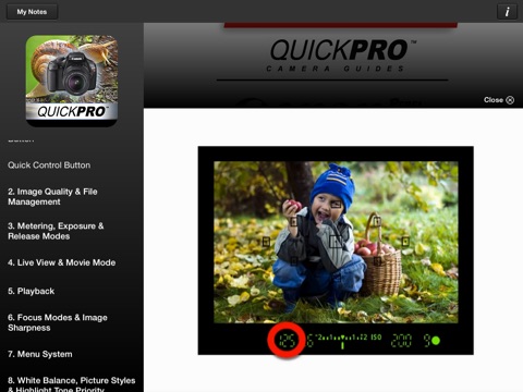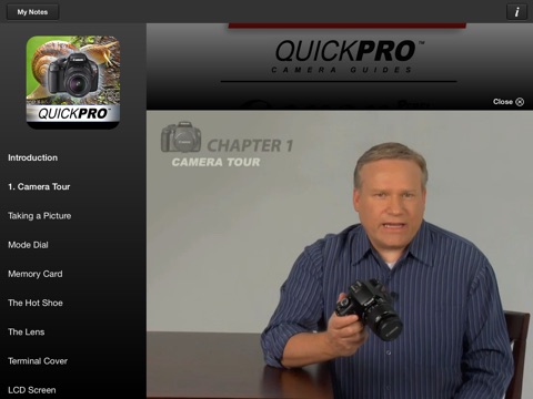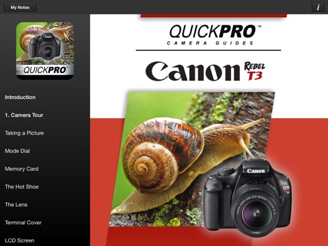 With iPhone Camera Guides from QuickPro, youll never have to miss the shot of your life again. Easy to use, full color video guides and tools to all the top digital models are available for quick reference and review on your Apple iPad.