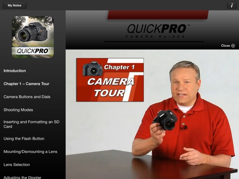 With iPhone Camera Guides from QuickPro, youll never have to miss the shot of your life again. Whether it’s that birthday surprise, graduation ceremony, or your daughters wedding day, the ability to take a photo like a Pro is within reach. Its literally in your pocket. Easy to use, full color video guides to all the top digital models are available for quick reference and review on your Apple iPhone.