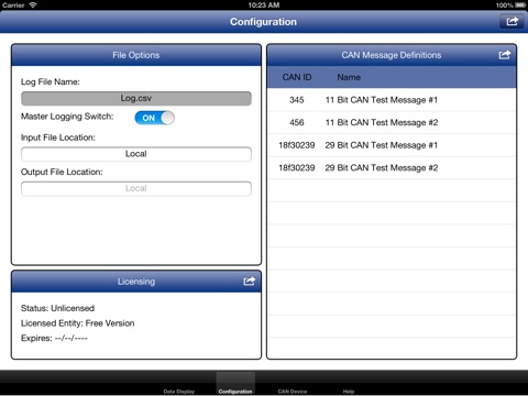 CANReader 2.5 is a tool to monitor and display raw data or translated messages in engineering units from automotive CAN data communications. It connects via WiFi to a CANLink WLAN device built by RM Michaelides Software & Elektronik GmbH. The CANLInk WLAN device is connected to the physical CAN bus.