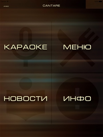 Это приложение предназначено для посетителей караоке-клуба "Cantare" (Люберцы). Здесь вы можете найти огромную базу данных караоке-зала, добавить песню в избранное, просмотреть меню заведения и найти его контакты.