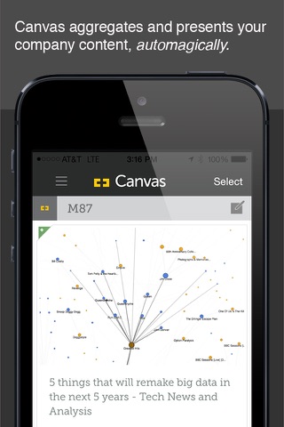 We think this is best done the way we consume other forms of content daily — through images and headlines that allow readers to determine if it’s of interest to them now, later or never. To this end, we’ve designed Canvas to serve as the company’s social intranet in the form of a magazine or daily reader — allowing employees to stay abreast of what’s going on as well as participate in the sharing of content and insights to advance the company cause.