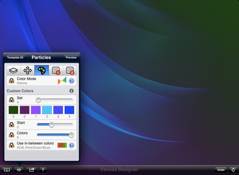 Please be aware that even with the new and fast layer preview mode, Canvas Designer uses high-quality vector-based drawing (similar to a professional-grade illustration program) and to render a high-resolution design it its highest quality may take a while to complete. Also, even this app comes with a selection of pre-fabricated designs (templates, new design wizard, online design library) the power of Canvas Designer is to dig deeper, adding your own layers and explore the settings. This is not an easy app to master but once you do, you will be rewarded with truly unique designs composed exactly the way you like them. To learn about certain techniques and to get inspired, please visit the online gallery on our website.