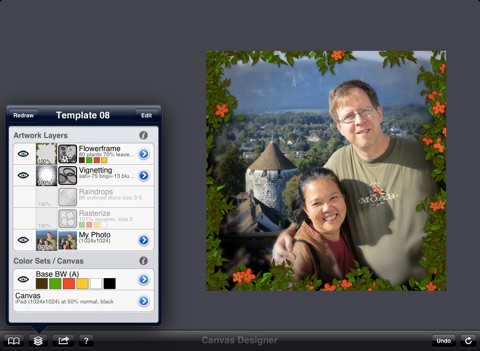 Canvas Designer lets novices and professionals alike compose designs from a variety of graphical and artistic elements and colors. Open a template and simply create your unique designs in seconds with one tap, or dig deeper into the settings for full control.