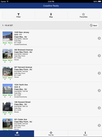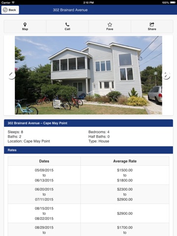 With this app you can view all aspects of vacation properties to rent in the Cape May area, including: