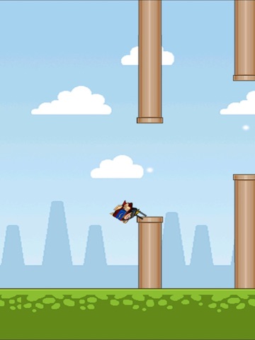 Tap your finger to keep the hero in the air. Pass between the posts and collect the coins to earn points.
