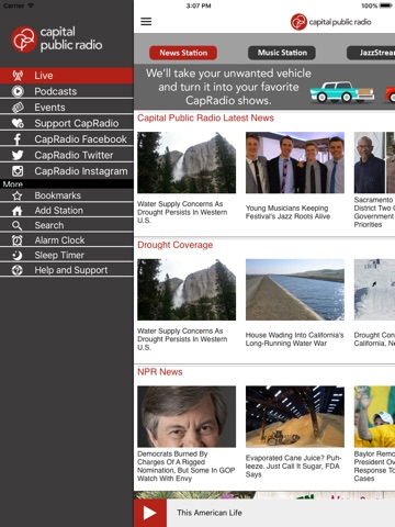 The Capital Public Radio App allows you to listen to Capital Public Radio live, pause and rewind the live audio, and view the program schedule for all the Capital Public Radio streams at once! You can explore On Demand content, search for stories, bookmark a story for later, and wake up to Capital Public Radio with the alarm clock!