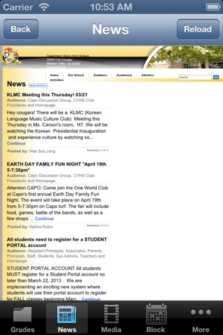 The Capo App is the official mobile app for Capistrano Valley High School. This app provides you with a direct link to the school log in page, as well as an information page about the school. You can keep up to date with the latest Capo 360 videos, school news, and you can even do homework last minute by viewing assignments after you are logged in! If you have trouble getting to class on time, the bell schedule for every day of the week is included in this app, as well as the block schedule. Want to know more about the developers of this app? There is a page dedicated to the students who put this app together. Go Cougars!