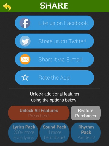 This Capoeira app is supported with a few optional features you can purchase within the app including: