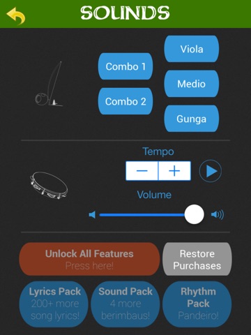 - Rhythm Pack: plays a looping percussion track of Pandeiro while you play berimbau.