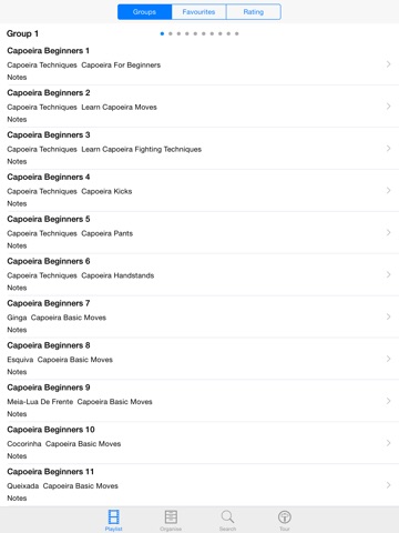 The app has groups aimed at pure beginners whilst others concentrate on Beginners Moves, Basic Moves, Mastering Capoeira and Advanced Lessons.