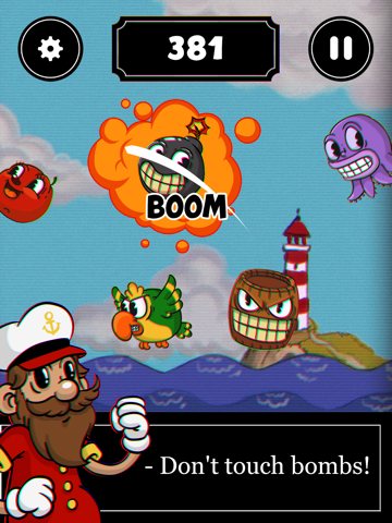 Rules of the game are simple. As well as in any ninja slash game, cut fruits, monsters, treasures, but avoid dangerous bombs, or youll sink like a stone and will feed sharks!