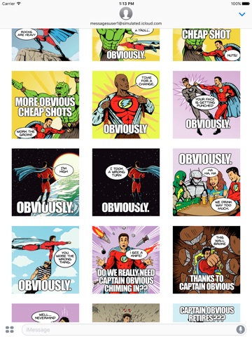 Captain Obvious always has something obvious to say right. Theres one in every group. Drop a funny zinger in your messages thread with this animated pack of obvious-related stickers. Youll love using these stickers at just the right moment!