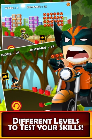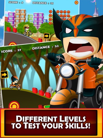 Avoid traffic cones, cranes, sign posts, and explosive barrels while collecting all extra petrols to keep your bikers racing to reach new records and top the gamecenter leaderboards.