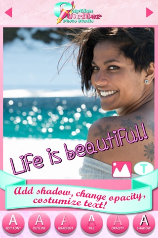 Caption Writer Photo Studio is a writer studio every stylish teenager must have! Sharing simple selfies or pics is not fashionable anymore, you have to win the number one position among instapic editors, and using picture frames and photo effects or making photo collages in old editors is not good enough. Try using this editing software to write captions on pics, simply add love quotes to your fancy selfie and share your new picsart on social networks to let everyone see how much in love you are! Take a picture with your BFF on your cymera, add one of birthday quotes and post this unique birthday card on your BFFs fb wall! Writing text on pics has never been easier, other studios are complicated, but luckily you have come across this caption writer photobooth which is a textgram application and text on pics studio in one. Deco your instaphotos with ease, edit pics by writing text on them and caption pictures like a pro using this text editor studio!