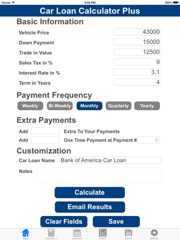 This app is almost 100% useless. Nowhere to input a trade, nowhere to input a lien. Almost 90% of car deals will have a trade in so not having these two simple features is a deal breaker. Lots of nice ads though...