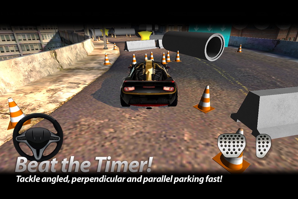 - 10 challenging car parking missions! Avoid cones and barriers!
