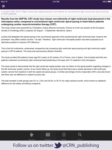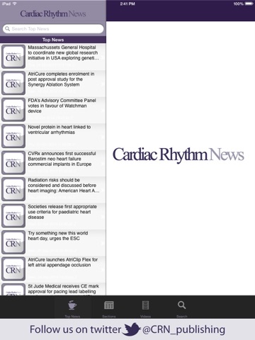 The Cardiac Rhythm News app has exclusive content with live updates from key CRM conferences such as HRS, EHRA, Cardiostim, Boston AF, ESC and Europe AF.