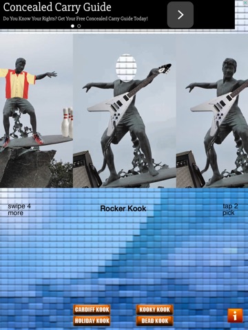 This is the FREE version of The Cardiff Kook app. For a version with no advertisements and A LOT more fun and clever templates, please look for the paid version of The Cardiff Kook, or simply go to the Info (i) screen of the free version and tap the Upgrade button at the top of the screen.