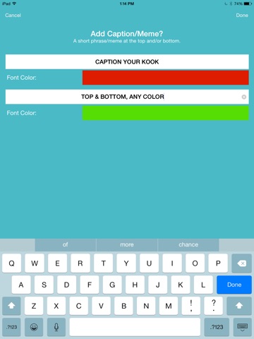 ► Add top and/or bottom captions/memes in any color to your Kook Creations.