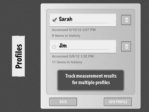 Cardiograph is perfectly tailored to allow multiple people to use the app on a shared device. You can create profiles for each of your family members or friends, and each of them has their own individual measurement history.