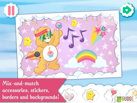• Decorate with magical accessories, stickers, stamps, borders and backgrounds from cloud-filled Care-a-lot