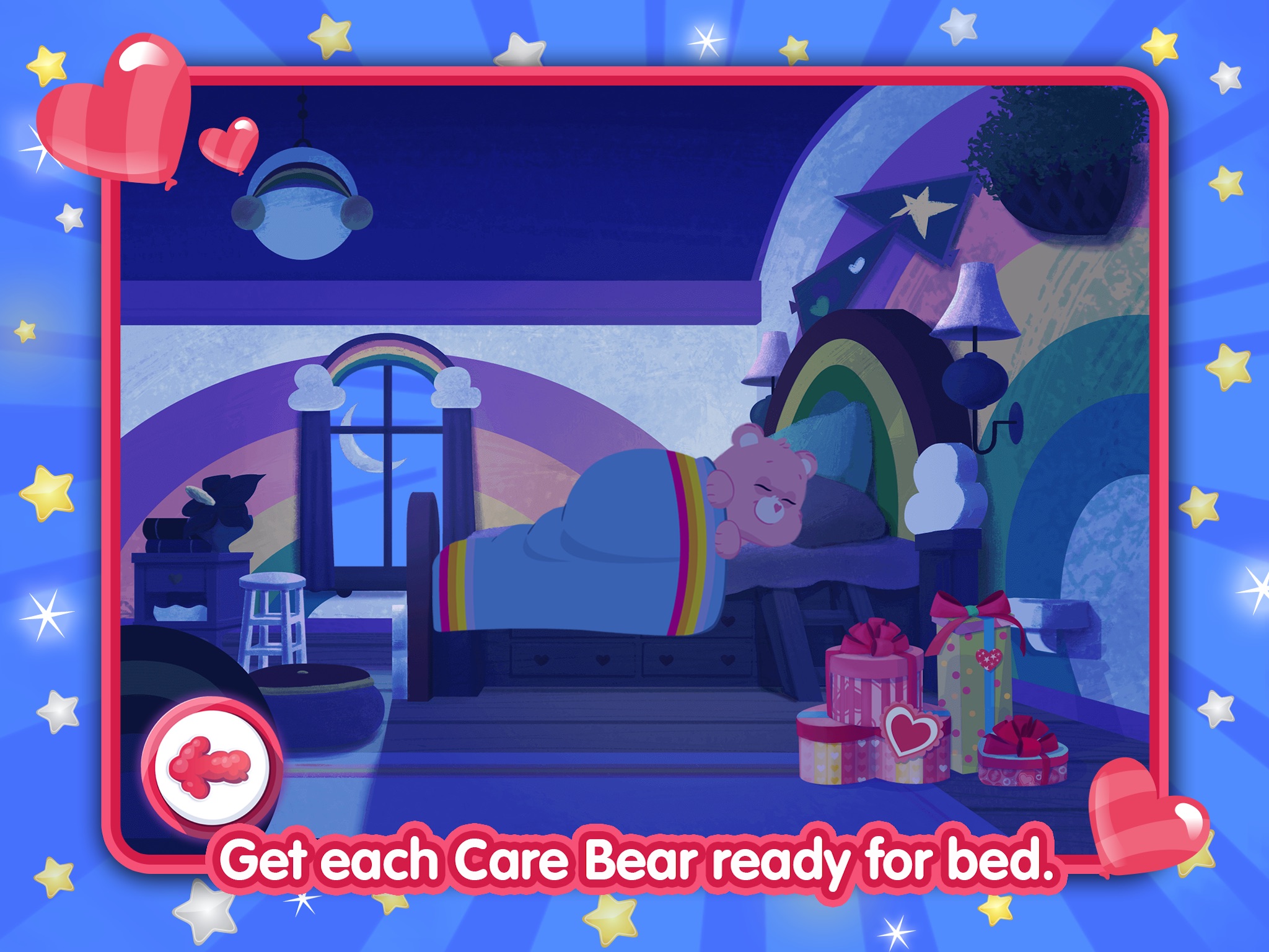 In ‘SLEEPY TIME,’ the CARE BEARS are very sleepy after a busy day, but need your cub’s help getting to sleep! You can: