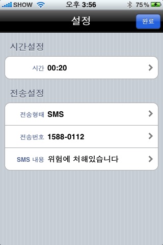 아이폰 용 개인신변 안전 어플리케이션으로, 본 어플리케이션 실행 후 위급상황 발생 시 타이머 기능이나 쉐이크 동작을 통해 기 입력된 송신대상 전화번호로 자동발신 혹은 GPS기반의 위치정보를 텍스트로 변환하여 SMS문자를 전송함으로써 위급상황에 효과적으로 대처할 수 있도록 도와줍니다.