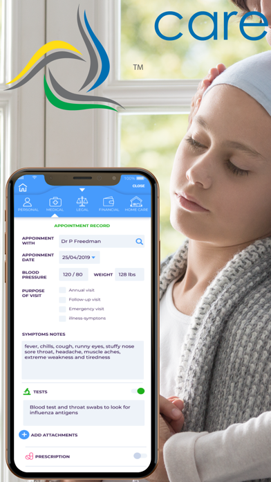 Take control of health information to facilitate decisions with family or in emergencies: Liberate health information for action by care team members. Health information is stored in a secure environment in Canada which complies with PHIPA requirements and available to care team members with appropriate permissions. Consolidate information, including diagnoses, medications, appointments, notes, and tests. Family and friends keep information current based on the patients care plan. Share health information with first responders or emergency departments in real-time.