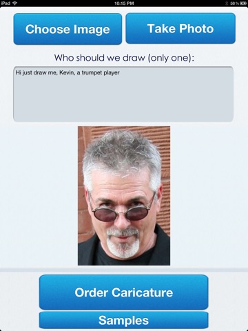 Caricature Booth is an iPhone/iPad app where you submit a photo and get back a drawn caricature. Download the app and submit a headshot of yourself or a friend to get started now.