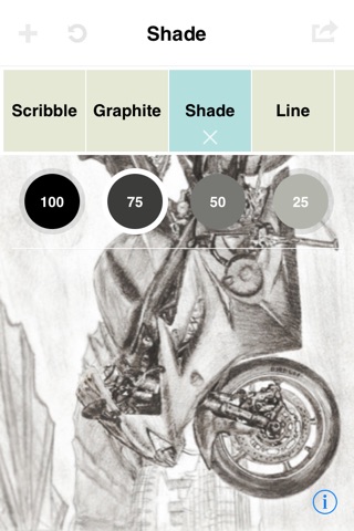 There are no knobs and dials to turn. There are no colors. There is no gallery. We believe that fewer things between you and the page mean a deeper drawing experience. Our tools -- Scribble, Shade, Outline, Ink, and Erase -- *feel* like natural drawing media.