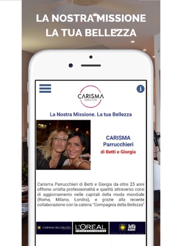 Carisma Parrucchieri ha aperto per la prima volta il 15 Novembre 1988 dalla allora titolare Agata Barbagallo, attività trasmessa alle figlie Betti e Giorgia Brizzi che l’hanno sviluppata e qualificata nel loro salone in via della Pace al centro commerciale di Castelnuovo Magra “La Miniera”. 25 anni di successi professionali grazie ai numerosi corsi di formazione tra i più riconosciuti in ambito nazionale, tra cui le scuole di Tony e Guy, Vidal Sassoon, dell’Accademia L’Oreal, di perfezionamento del colore, taglio ed acconciatura con la scuola del maestro “Aldo Coppola”.