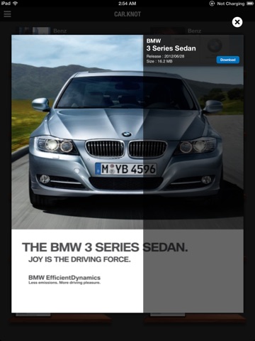- 왼쪽상단의 버튼을 클릭하시면 차종별로 리스팅 하여 보거나 Favorite한것들 혹은 다운로드 받은 매거진만 보실 수 있습니다.