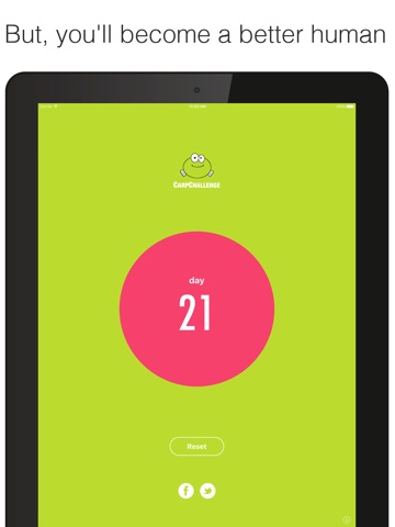 Download Carp and start your 21 Day Challenge. On Day 1, share your mission with friends and family and have them hold you accountable. If you complain, they should call you out.
