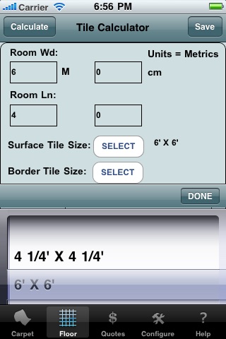 ✔ TILES/FLOOR: Choose from 5 different surface & border tile sizes. Calculator automatically accommodates for Metrics.