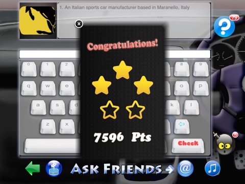 There are several levels which contain different automobile logos. More than 12 correct answers in a level will unlock the next level.