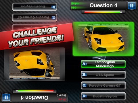 Another fun way of proving you’re a real expert in car makes and models is to challenge other players via Game Center. This online multiplayer mode is turn-based, meaning that you have to challenge another player, finish one round and then wait for your opponent to finish his. Each round has five questions and the game is finished after four rounds. You’ll receive notification when your turn to play comes!